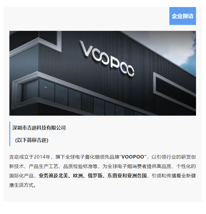 吉邇公司在發展過程中深刻意識到:擁有不斷創新的硬核技術,掌握知識產權,還要鋪墊好可持續發展的營銷渠道,才能讓中國電子煙品牌真正的走出去,更能在海外市場占據的主導權。