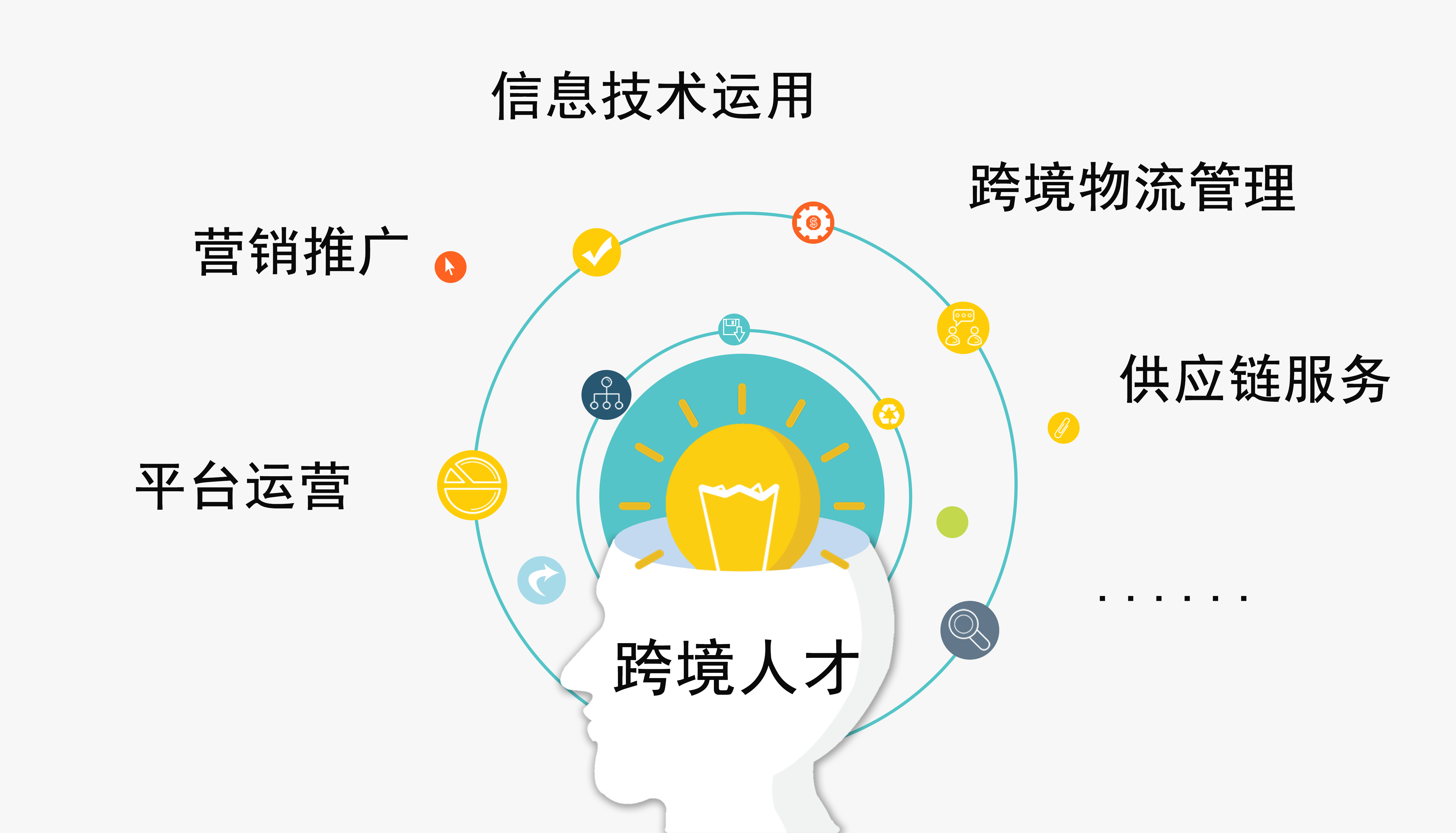 “十四五建議”明確指出:規劃高等教育人才,應加強創新型、應用型、技能型等復合型人才培養”。由于跨境出口銷售和經營涉及產品種類復雜化和營銷模式多元化,對電商人才能力提出**的要求。聚焦國民經濟和社會發展的關鍵點、瓶頸點,跨境出口人才需具備下圖等多方面的綜合能力,扎實提升原始創新能力,突破和解決一系列“卡脖子”難題。